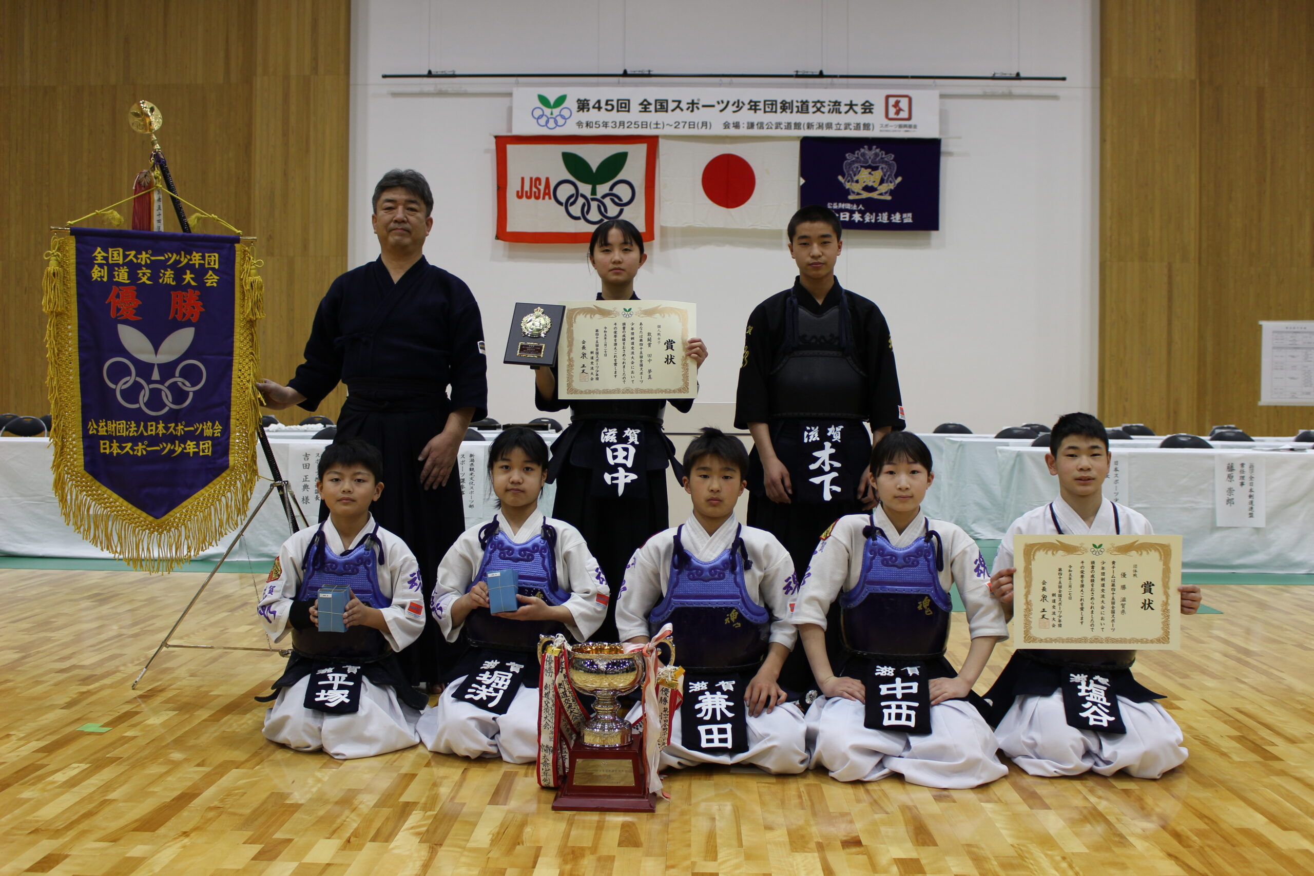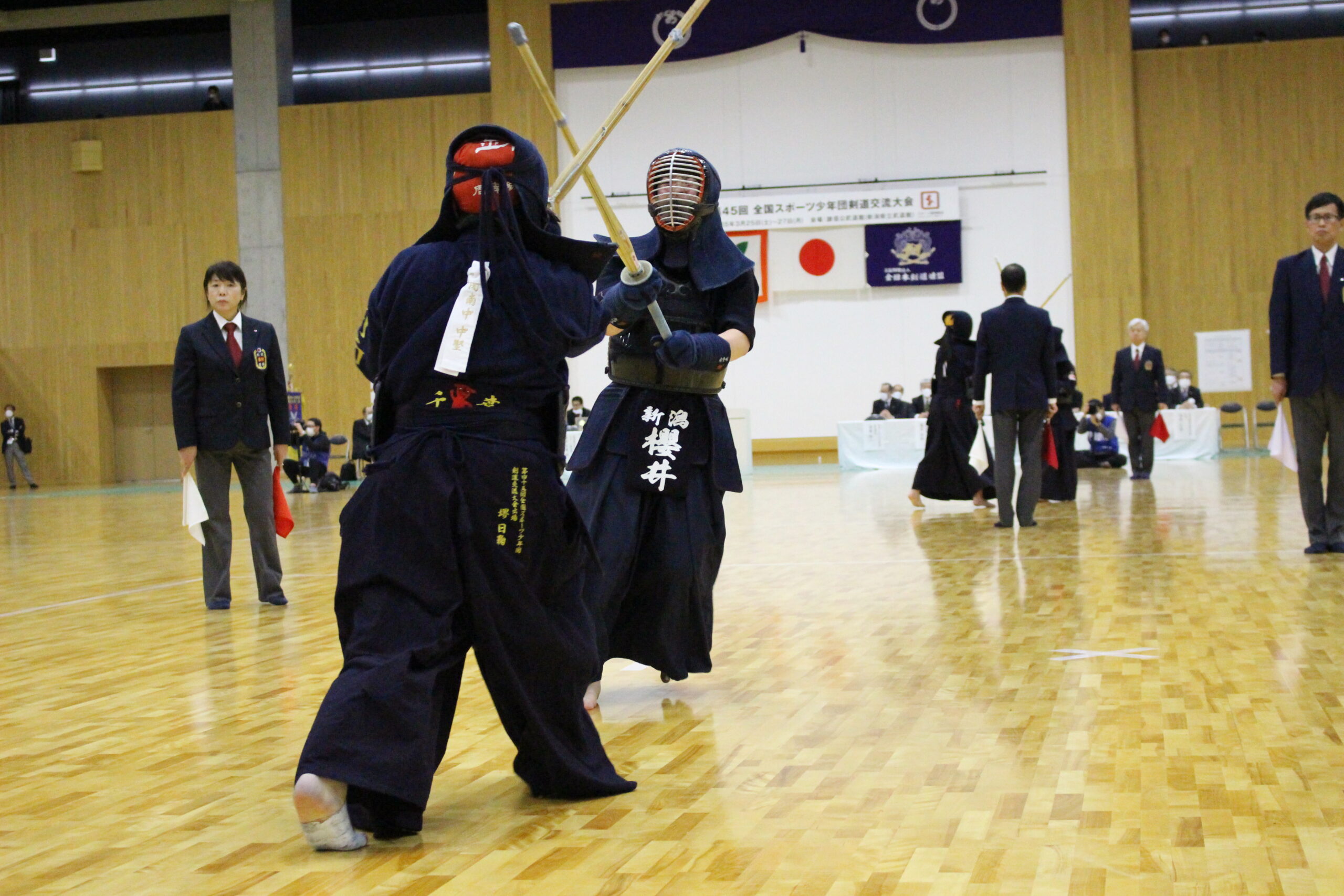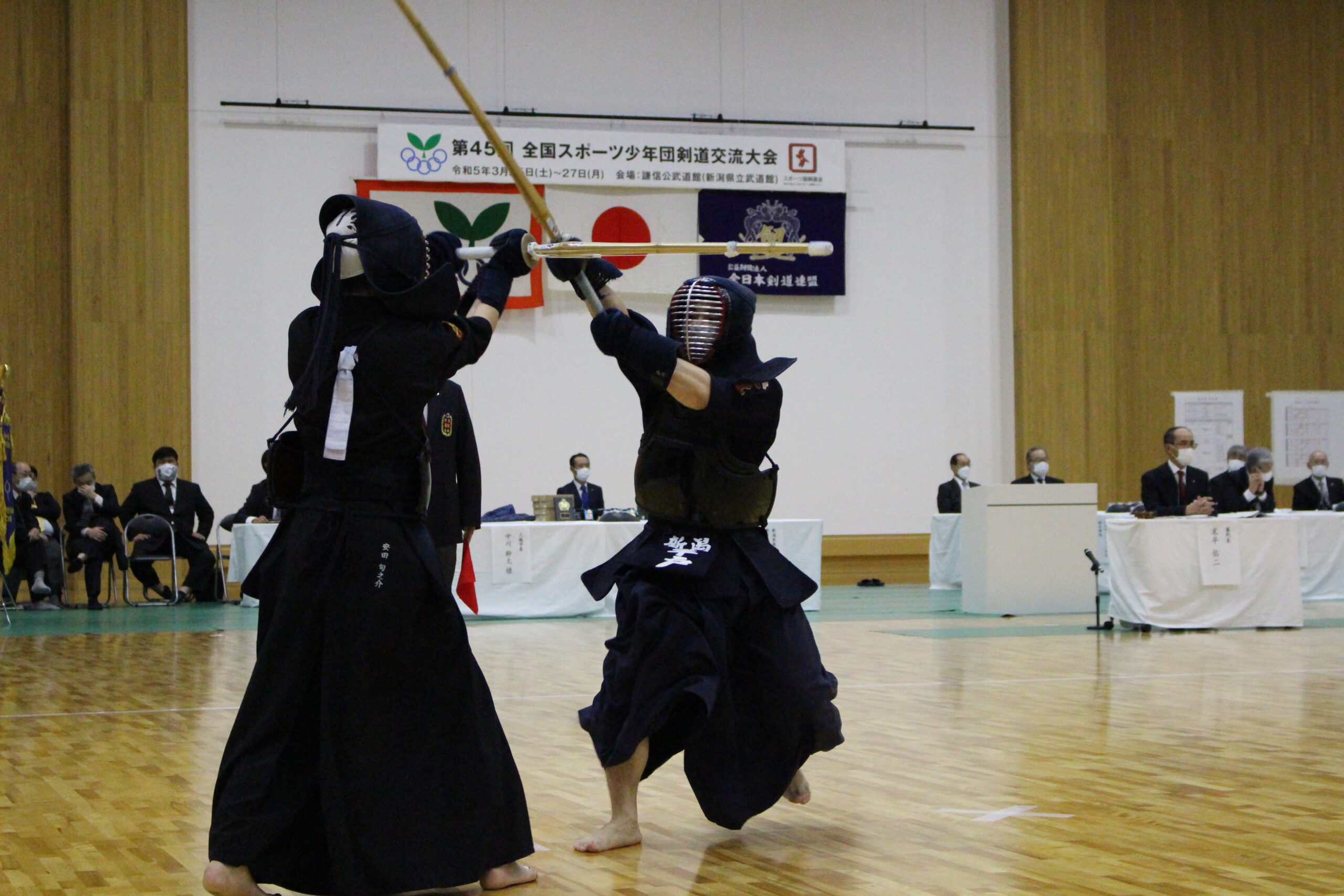 第45回全国スポーツ少年団剣道交流大会を令和5年3月25日(土)~27日(月)の3日間の日程で上越市の「謙信公武道館(新潟県立武道館)」で開催し、都道府県と地元上越市の代表を加えた小学生団体戦48チーム、中学生個人戦男女95名の計381名が参加しました。