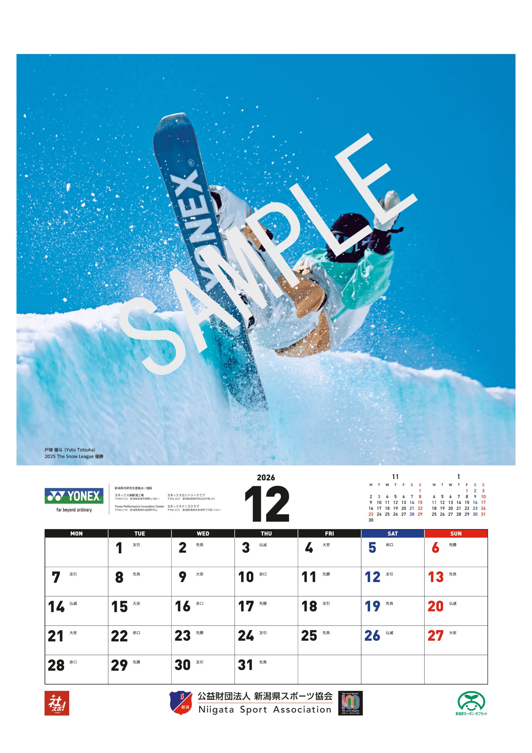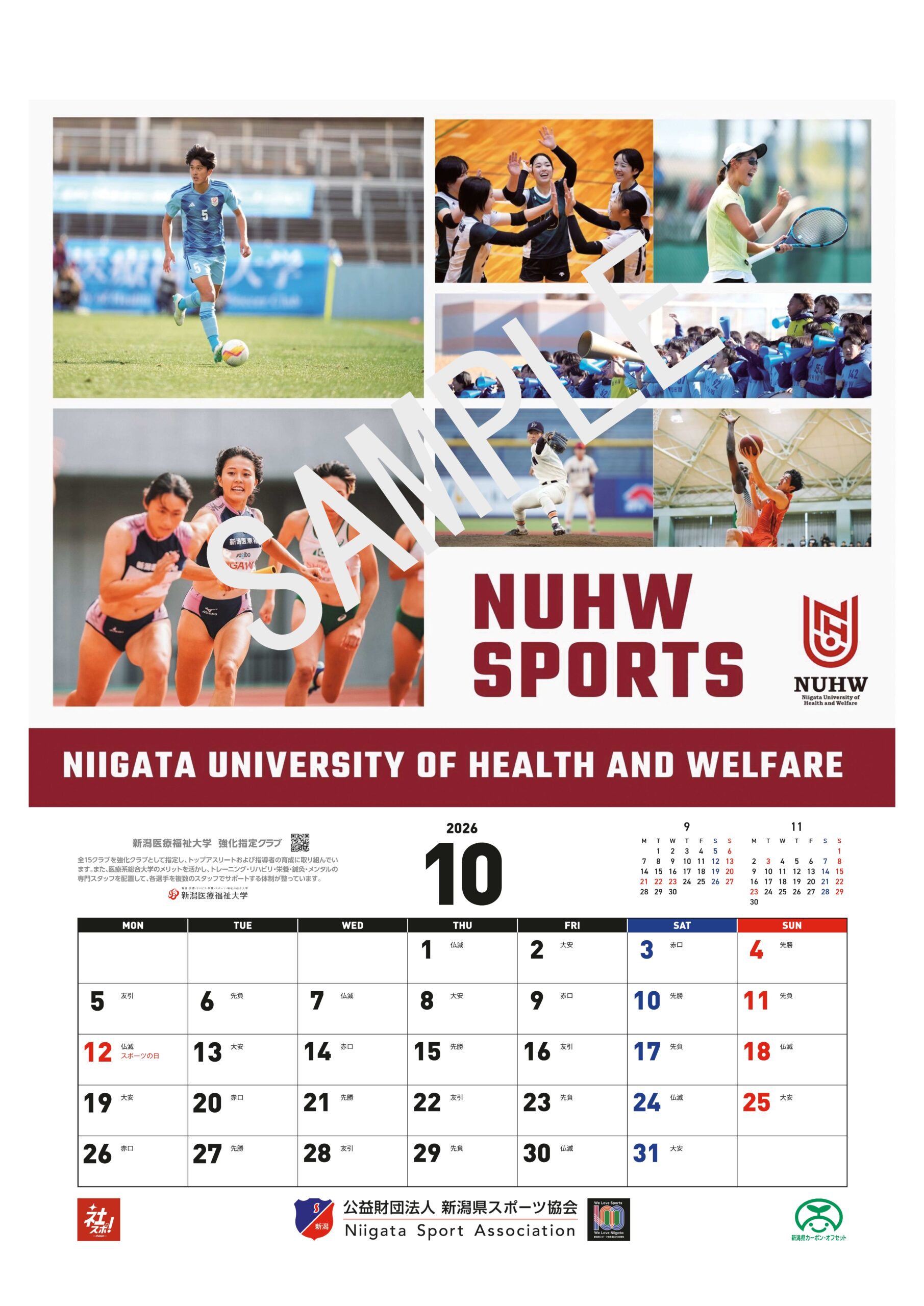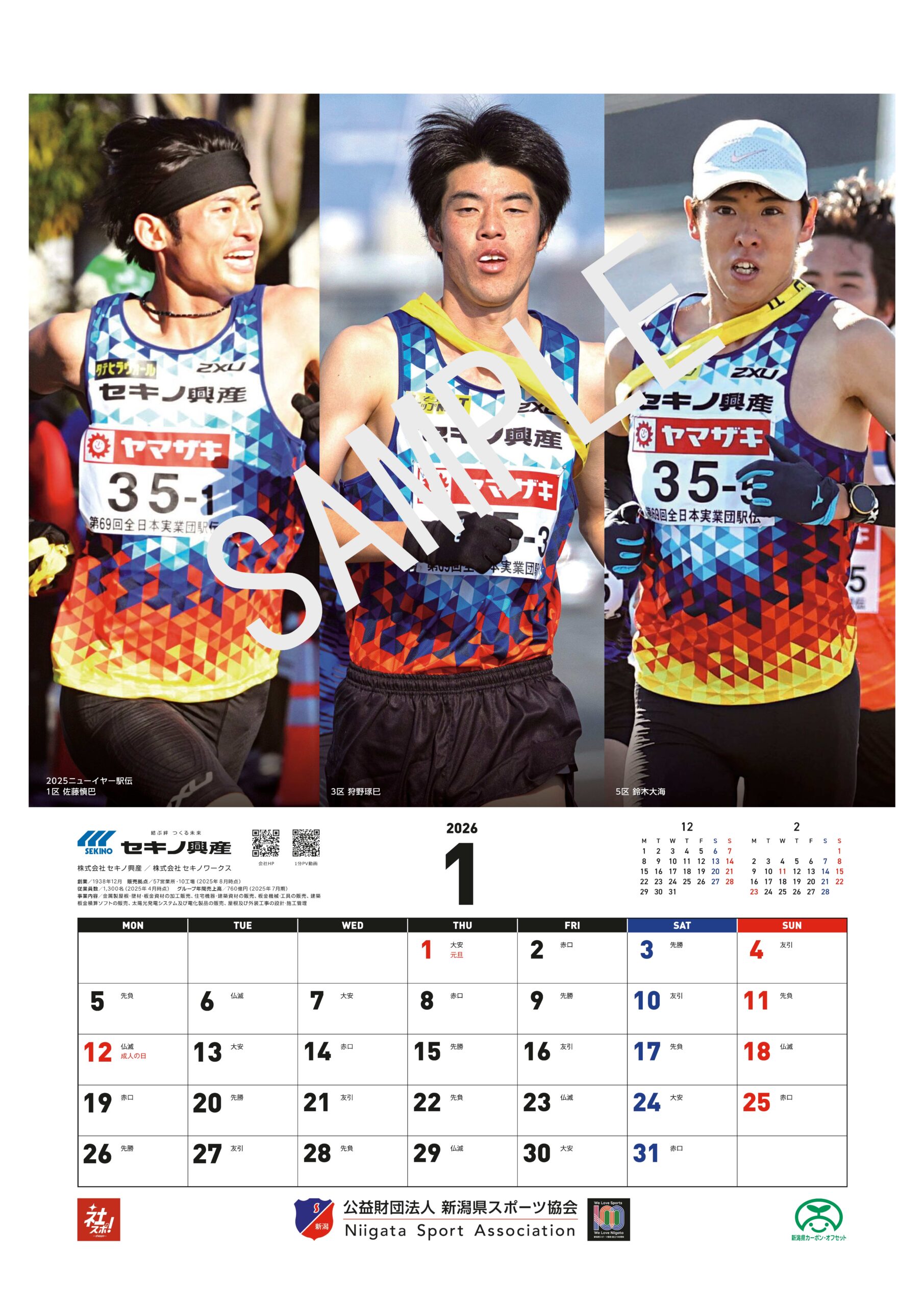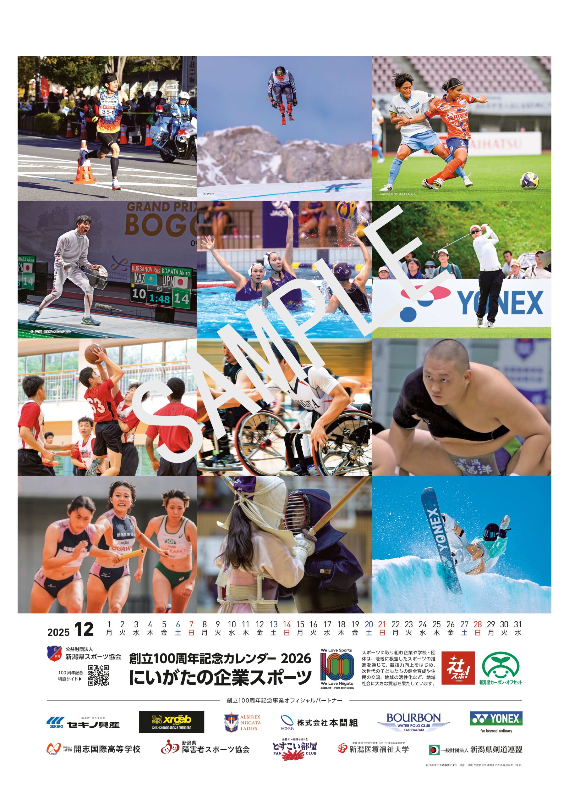 公益財団法人新潟県スポーツ協会は、令和8年に迎える創立100周年を記念し、県内企業や団体によるスポーツ推進の取組を紹介するカレンダー2026「にいがたの企業スポーツ」を、その協賛を得て制作しました。