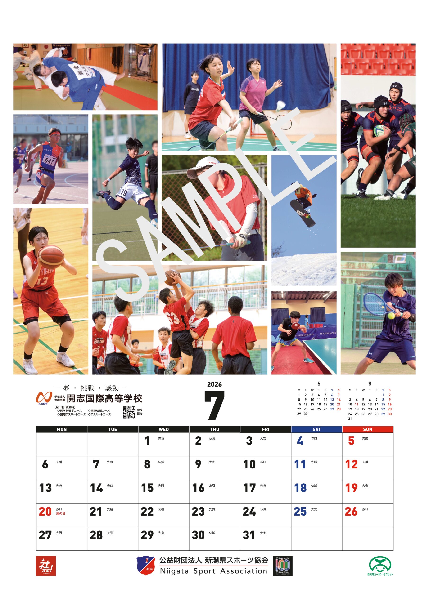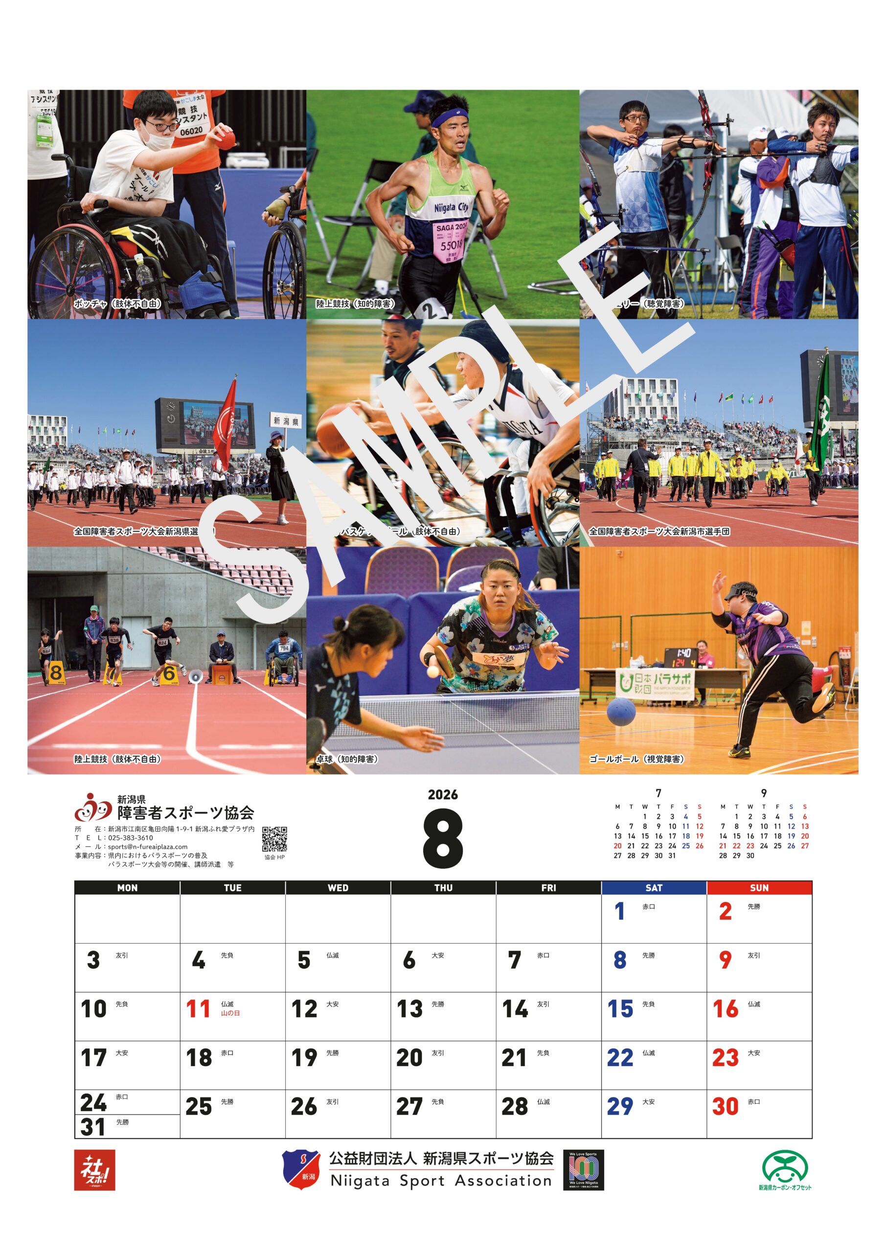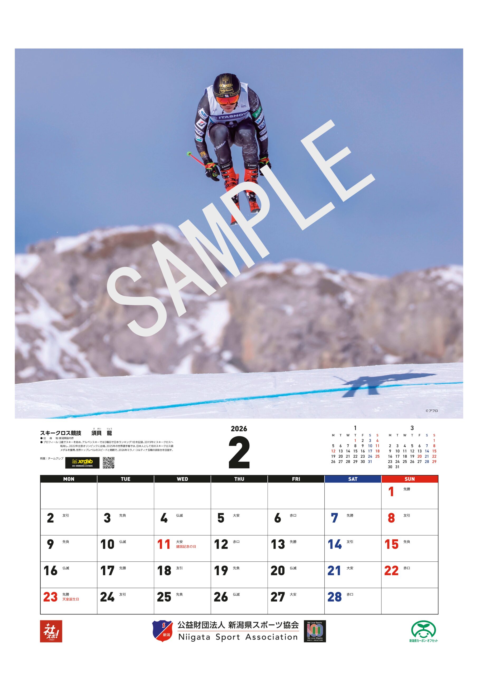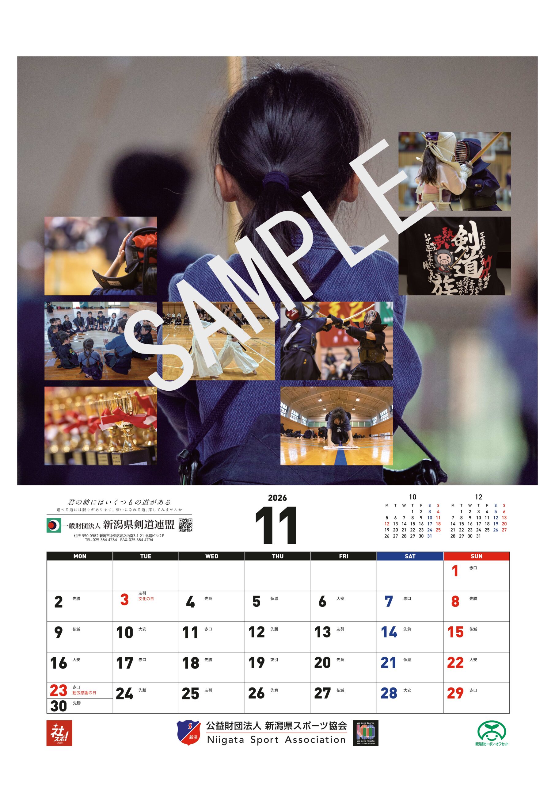 公益財団法人新潟県スポーツ協会は、令和8年に迎える創立100周年を記念し、県内企業や団体によるスポーツ推進の取組を紹介するカレンダー2026「にいがたの企業スポーツ」を、その協賛を得て制作しました。