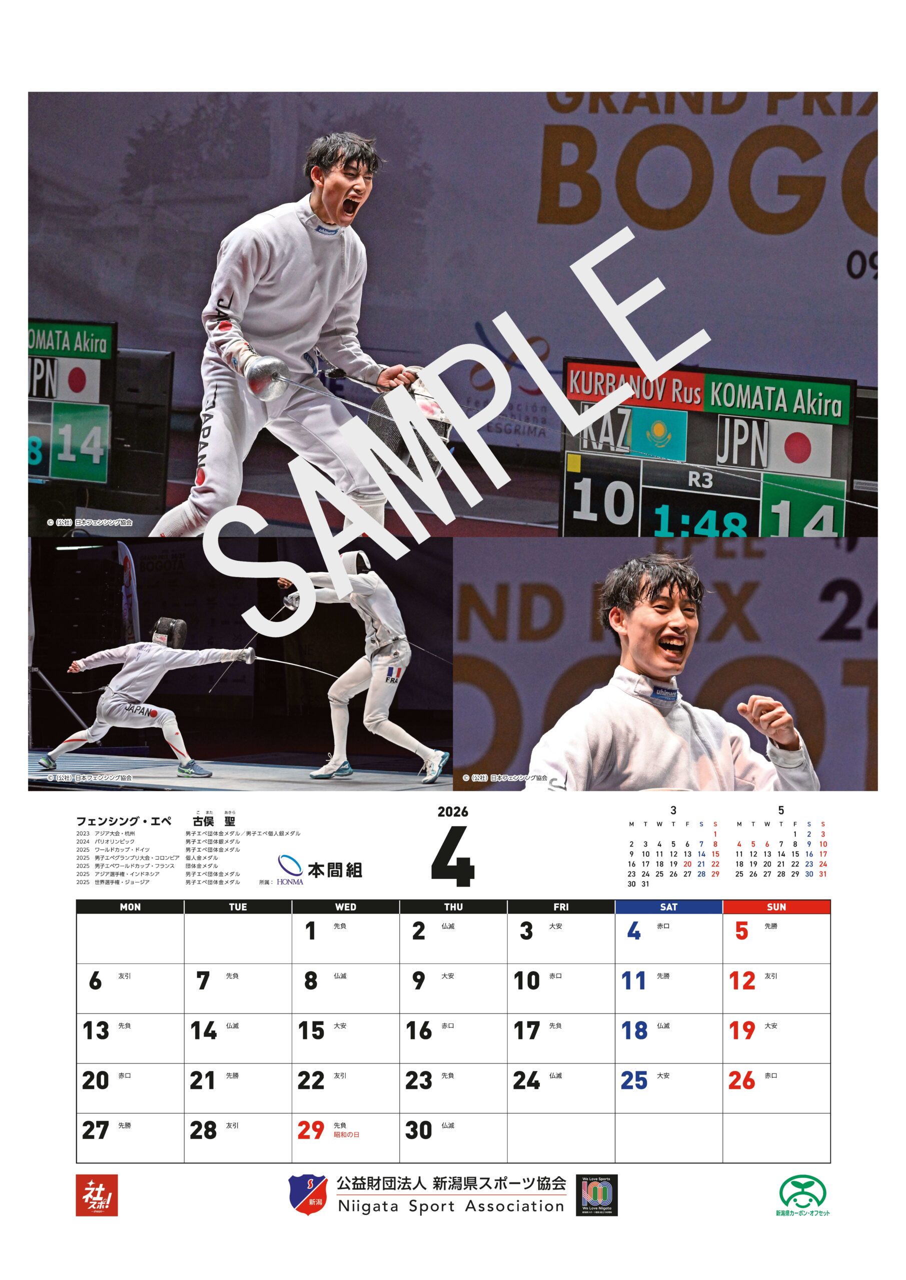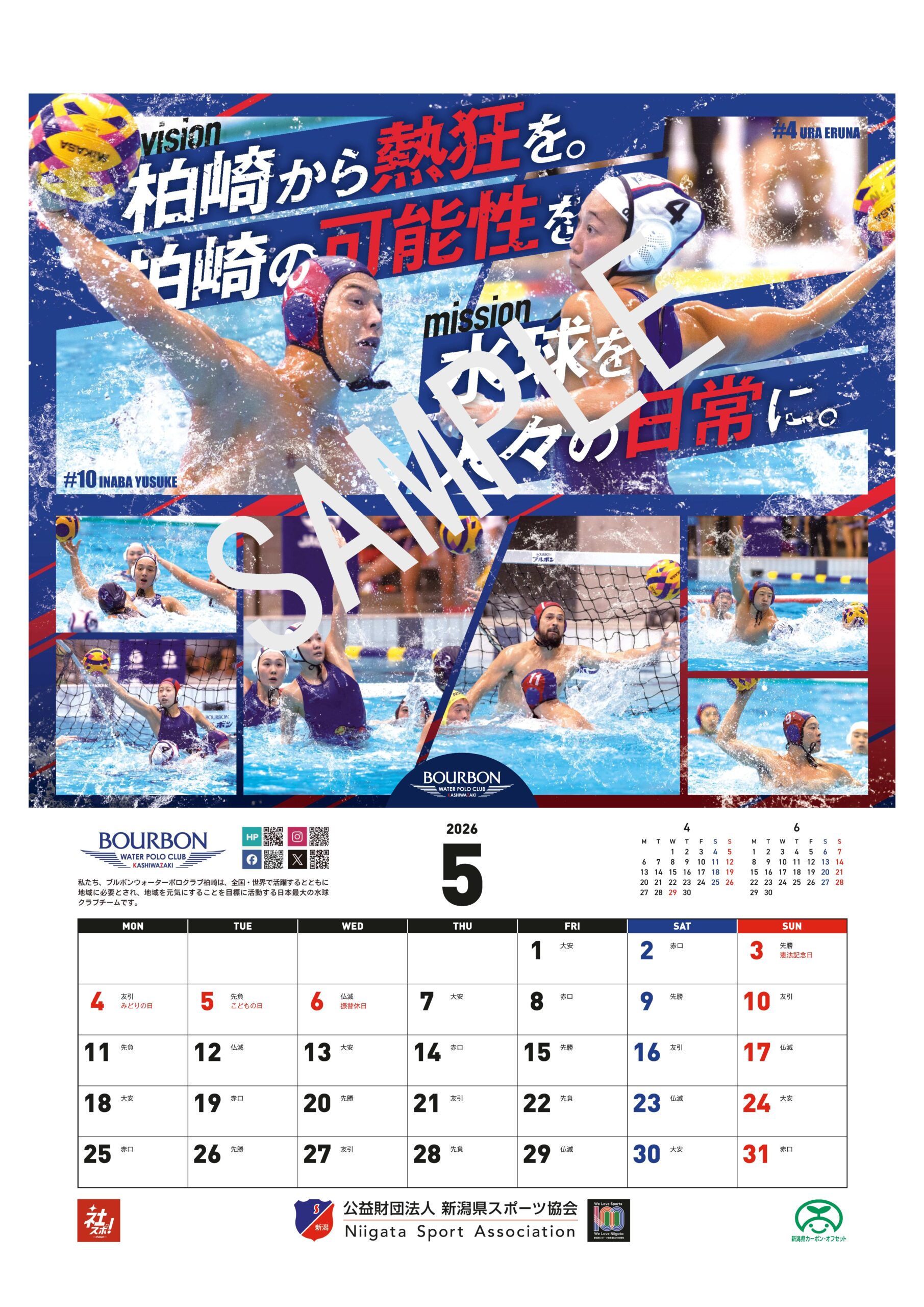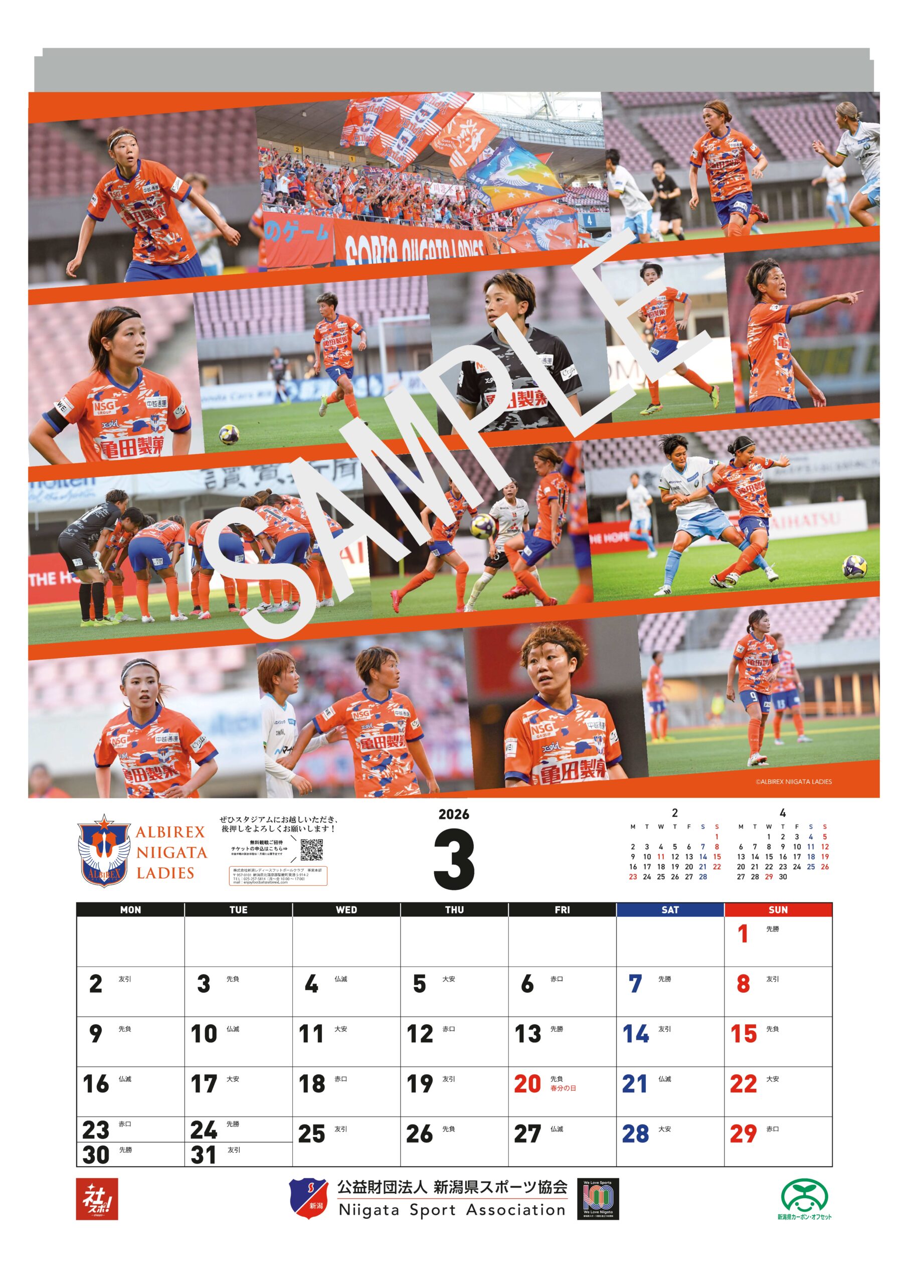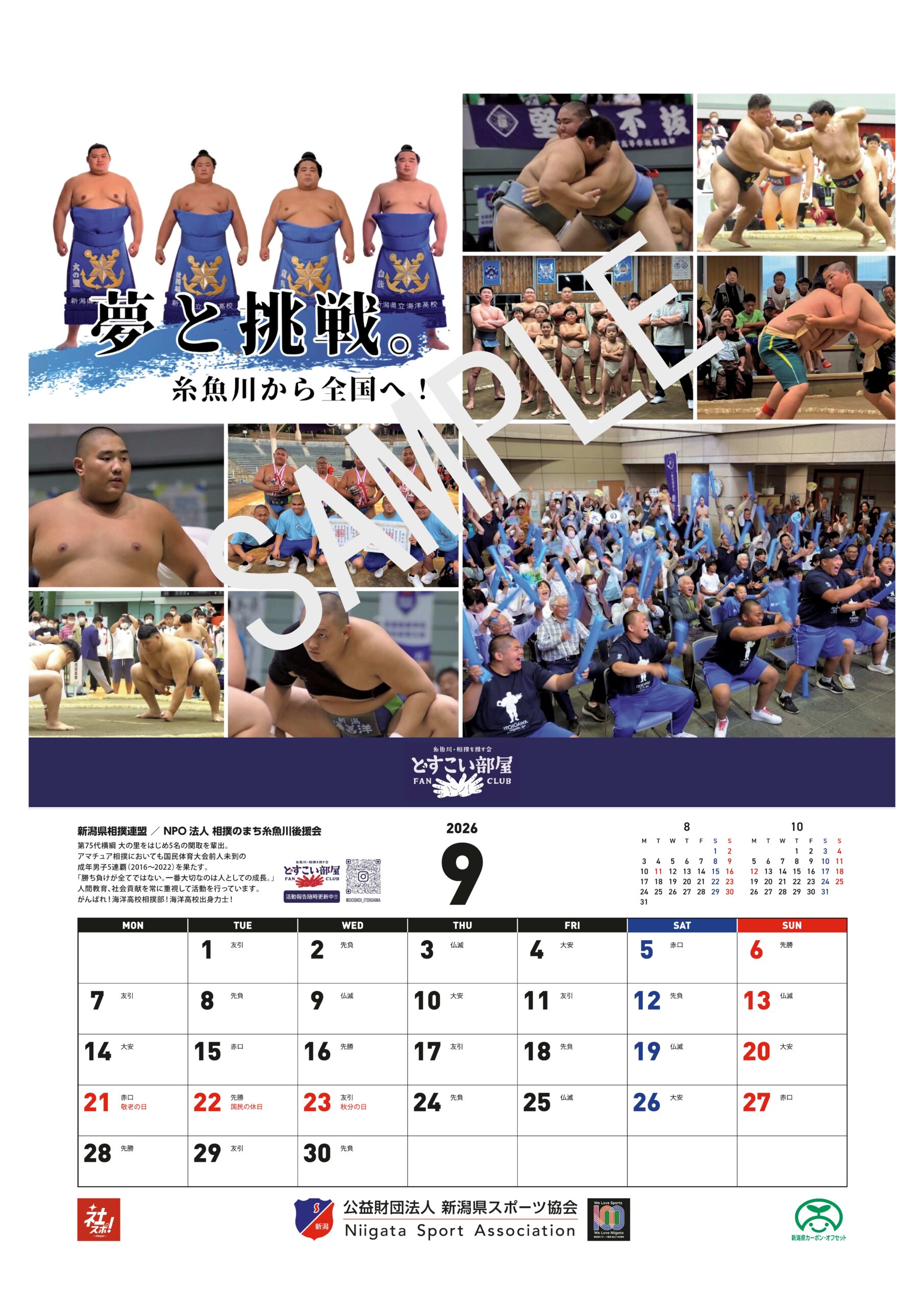 公益財団法人新潟県スポーツ協会は、令和8年に迎える創立100周年を記念し、県内企業や団体によるスポーツ推進の取組を紹介するカレンダー2026「にいがたの企業スポーツ」を、その協賛を得て制作しました。