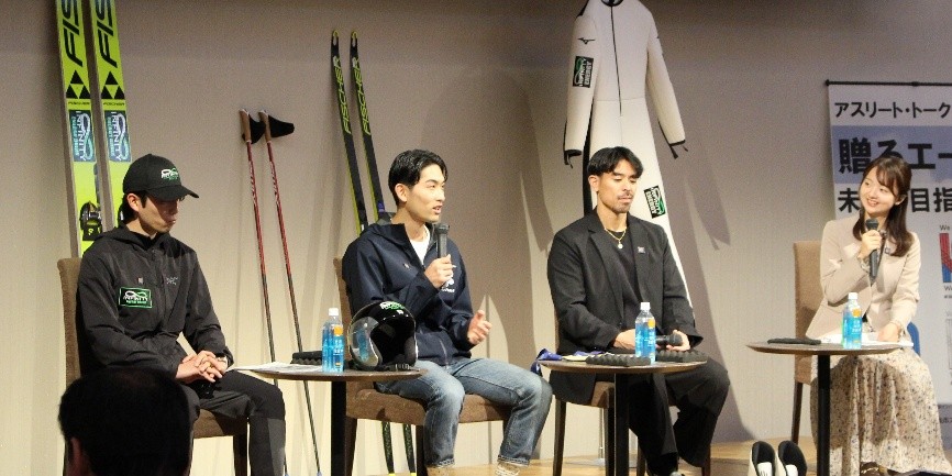 令和8年1月17日(土)、BSNアナウンサーの高松みなみさんをモデレータ―に、清水亜久里さん、清水礼留飛さん、當銘孝仁さんの3名のアスリートの皆さんから、夢を持つことの素晴らしさや、日々の生活での目標設定、挑戦に活かせる実践的なヒント、そして、その一歩を踏み出す勇気を与えていただきました。